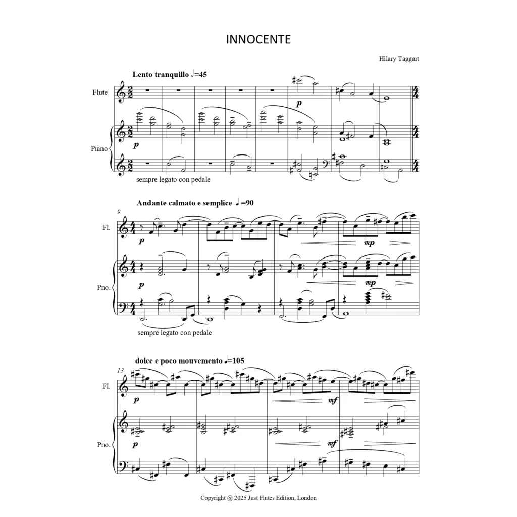 Hilary Taggart has written this piece from the heart and it shows in every phrase. The music is as dark as the de Chirico cover image but technically it flows beautifully over the entire range, weaving the narrative through lovely flute writing. The accompaniment is also well-crafted. This is simple music which belies an underlying turmoil and not to be missed! Difficulty Guide: 7