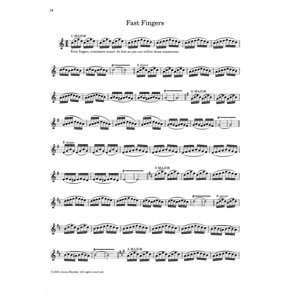 The twelve short exercises in this lovely book are all given titles so they add a musical point to a technical necessity, and the mix of solos and duets ensures that a different focus is given to each one. All the basic technical skills are covered and there’s even one that includes key slaps which will really fascinate a young player. Highly recommended for beginners everywhere! Difficulty Guide: 1-3