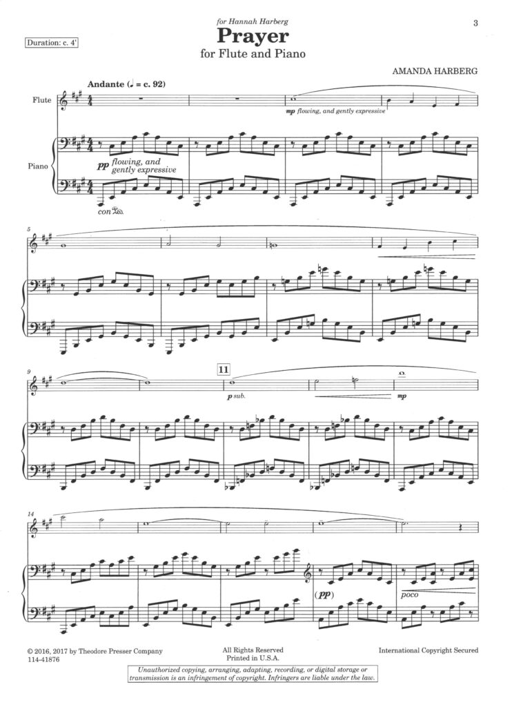 Amanda Harberg is renowned as a composer of challenging works for the flute but here she has produced a vignette of real beauty. The crafting of the melody brings out all the darker flute colours so that the soaring lines towards the end can effect a contrast and bring hope. This one will definitely clutch at your heart strings! Difficulty Guide: 7